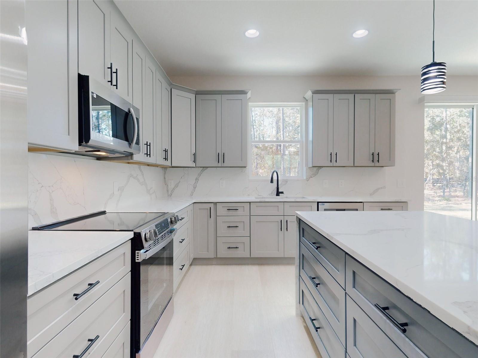 This exceptional new home offers premium upgrades throughout, all included in the price. Designed with high ceilings, 8-foot doors, and an open, elegant floor plan. The gourmet kitchen features quartz countertops, a large island, stainless steel appliances, and 42-inch soft-close cabinetry. Expansive bedrooms, abundant closet space, and refined bathrooms with linen closets add comfort and functionality. Enjoy outdoor living on the welcoming front porch and the oversized rear concrete slab extending the full length of the home. Two-car garage with openers.